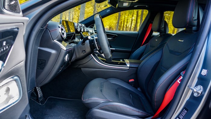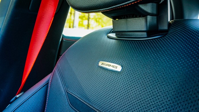 AMG C43配備了運動型座椅,提供出色的支撐性和舒適性,亮眼的紅色安全帶也是AMG車型特有的配置。