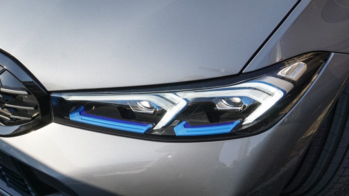 細(xì)節(jié)方面,前大燈組造型非常犀利,內(nèi)部由兩個(gè)L型的日間行車燈勾勒出全新的“天使眼”造型,顯得更加犀利、兇狠。同時(shí),標(biāo)志性的“雙腎”格柵也變得更加寬大,并全面黑化處理。