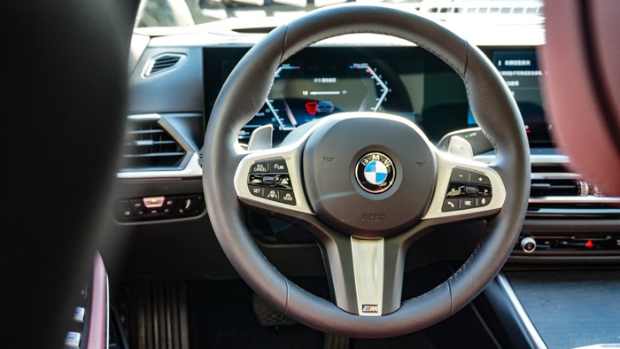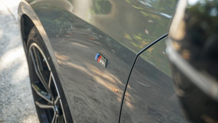 車型C柱處最新樣式的霍夫邁斯特拐角取消了長軸距版專屬的“小尾巴”造型,不再特殊。翼子板上的M運(yùn)動(dòng)徽章是必不可少的元素。