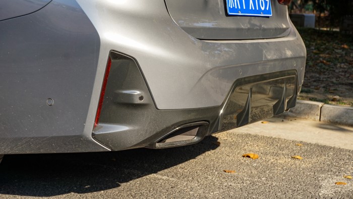 而在車尾部分,車輛采用了平直鋒利的尾燈組輪廓,內(nèi)部“L”形的紅色燈帶營造出了凌厲的視覺效果。這個(gè)“L”形尾燈,可以看到8系尾燈影子,雙邊單出的不規(guī)則形狀排氣,非常運(yùn)動(dòng)。尾部突出來的黑色小尾翼增添了精致感。