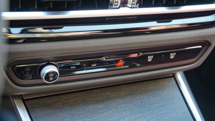 懸浮式液晶屏配合全新造型的電子擋桿以及三輻式M運(yùn)動(dòng)多功能方向盤,讓新車看上去十分年輕、運(yùn)動(dòng),換擋桿區(qū)域的裝飾面板采用實(shí)木質(zhì)感的紋路,視覺和觸感上質(zhì)感一流。