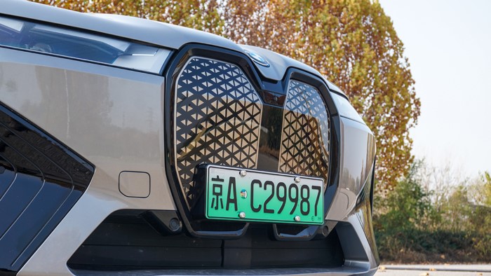 作為一臺不需要太多進氣格柵的純電動車型,iX仍保留了寶馬的家族化“雙腎” 特征點,不過賦予了其新的功能:傳感器模塊。