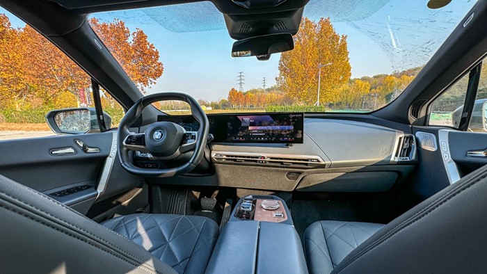 在實際駕駛中,iX有著類似燃油車一樣的底盤質(zhì)感,相比其他電動車它更有駕駛感覺。iX轉(zhuǎn)向輕盈,阻尼油潤,營造出愜意的駕駛氛圍。掛入D擋,輕踩加速踏板,車輪開始緩緩滾動。電機高頻噪音細(xì)不可聞,輪胎與路面的撞擊也沒有制造波瀾,車廂環(huán)境可以用“風(fēng)平浪靜”來形容。iX的中低速靜謐性做到了無懈可擊,讓人驚訝。