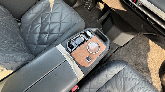 寶馬iX的坐墊很寬大舒適,緊貼車門空間得以最大利用,座椅有著更好的支撐,并配備了通風(fēng)加熱和按摩功能,因此有著舒適的乘坐感受。后排的USB-C接口放在了前排座椅的背面,往下是一個拓展塢,打開滑蓋后可以安裝諸如小桌板和衣架等配件。