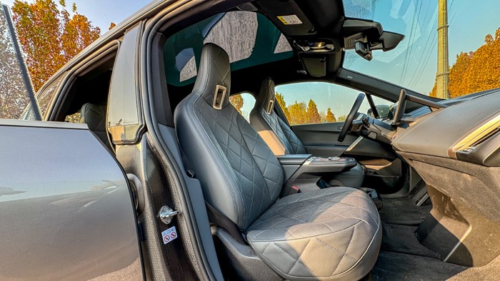 打開iX的電尾門,后備廂內(nèi)側(cè)門邊帶有示寬燈,能起到給予后方車輛警示的作用。第二排座椅支持“4:2:4”比例放倒,靠背放倒后也基本能和后備廂底板形成一個平面,后備廂內(nèi)部空間非常規(guī)整。打開車門,可以看到車門內(nèi)框的碳纖維車架,寶馬稱之為Carbon Cage碳纖維籠式車架,iX是第一款用上這種結(jié)構(gòu)的寶馬車型,在車架強度以及輕量化上取得了很好的平衡。車尾門的框架以及車頂前方的橫梁也都為碳纖維結(jié)構(gòu)。
