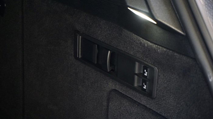 電動調(diào)節(jié)座椅的按鍵被移到門板上,使用閃閃發(fā)亮的幾塊水晶。車門的開關(guān)采用按鍵的形式,保持了車廂簡潔風(fēng)格的一致性。角落里安置了機械式拉手,避免車輛斷電或者故障時遇到無法開門的尷尬。本車選裝了價值4.35萬元的寶華韋健沉浸式4D專業(yè)音響,功率達1615W,擁有30個揚聲器,聽起來的感受相當(dāng)不錯,座椅內(nèi)部還會加入了共振器,音樂的低音鼓點會通過椅背傳遞。