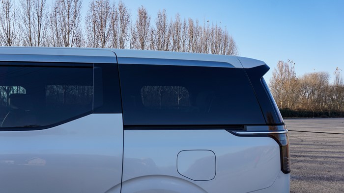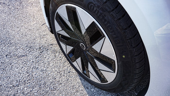 車身側(cè)面線條簡(jiǎn)潔利落,流暢的車頂線條與傾斜的后車窗相得益彰,營(yíng)造出動(dòng)感的視覺效果。在三圍方面:5206×2024×1859mm,軸距3205mm。該車選配了21寸的大型雙色輪轂,采用馬牌輪胎,靜音效果不錯(cuò)。
