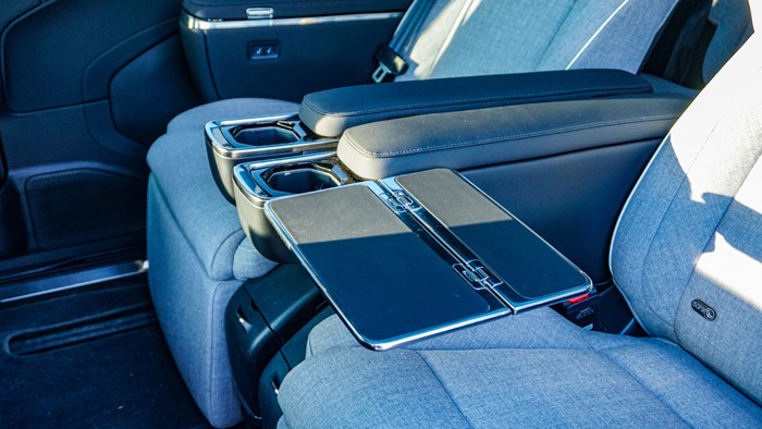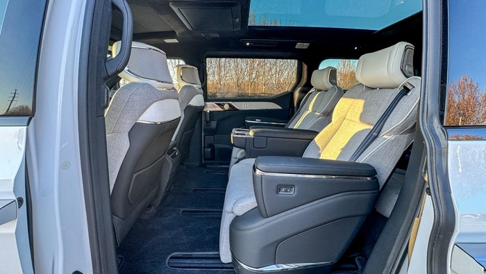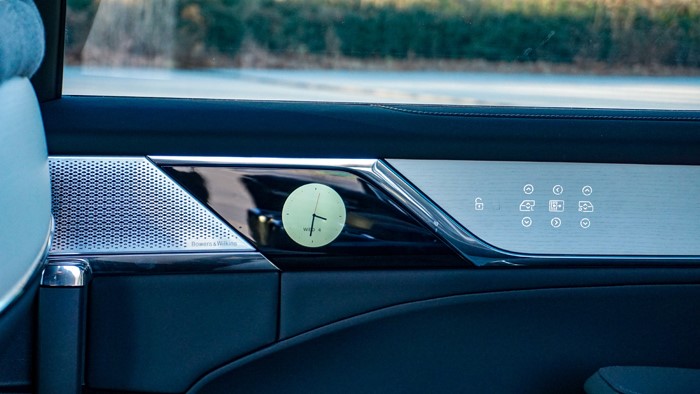 說到尊貴的第二排商務(wù)艙空間,兩個(gè)舒適的航空座椅帶有通風(fēng)按摩加熱及一鍵式0重力功能,還有頭頂?shù)亩嗝襟w液晶顯示屏,讓旅途不再枯燥。側(cè)滑門的玻璃是可以電動(dòng)升降的,還鑲嵌了數(shù)字時(shí)鐘,豪華感的營(yíng)造十分到位。