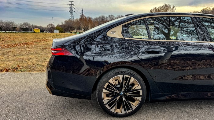 車輛采用20寸雙色動(dòng)感輪轂,前后鴛鴦?shì)喬?,?guī)格為前245/40 R20,后275/35 R20。總體來說,寶馬5系轎車的外觀設(shè)計(jì)融合了未來主義的元素和寶馬品牌的傳統(tǒng)特色,展現(xiàn)出獨(dú)特的時(shí)尚感和科技感。