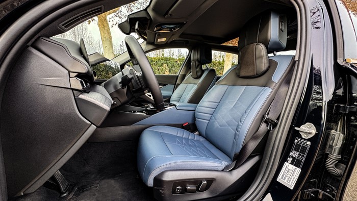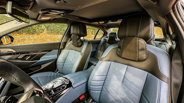 拉開車門走進(jìn)內(nèi)飾,寶馬5系的內(nèi)飾設(shè)計(jì)充滿了現(xiàn)代感和科技感,融合了豪華材質(zhì)、精致工藝和高科技配置。飽和度很低的藍(lán)色真皮與鋼琴漆、香檳色裝飾板相結(jié)合,很顯檔次。