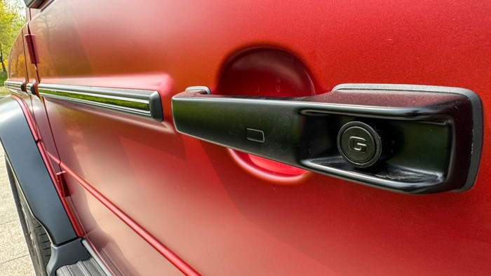 為保持經(jīng)典的造型奔馳G的設(shè)計(jì)師保留了一切經(jīng)典元素。舉個(gè)例子來(lái)說(shuō),車輛位于翼子板上的轉(zhuǎn)向燈是一直以來(lái)奔馳G所堅(jiān)持的設(shè)計(jì)。車輛標(biāo)志性的機(jī)械把手、裸露在外的門鉸鏈等經(jīng)典設(shè)計(jì),都在全新奔馳G上得以保留,就連門拉手的按鈕上都被設(shè)計(jì)了G字元素。