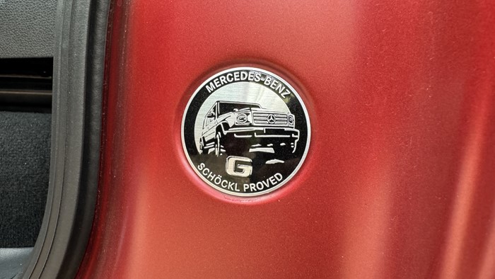 奔馳G500在車輛的主駕駛B柱底部還隱藏了schckl Proved徽章。這枚徽章代表著奔馳G通過(guò)了奔馳G系列一直以來(lái)專屬的測(cè)試場(chǎng)地:奧地利schckl山峰的測(cè)試。
