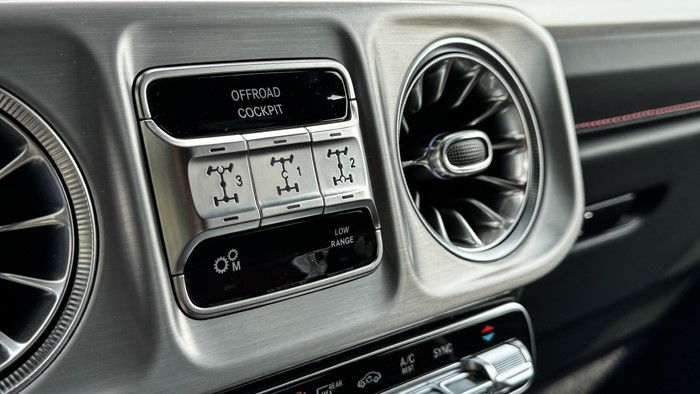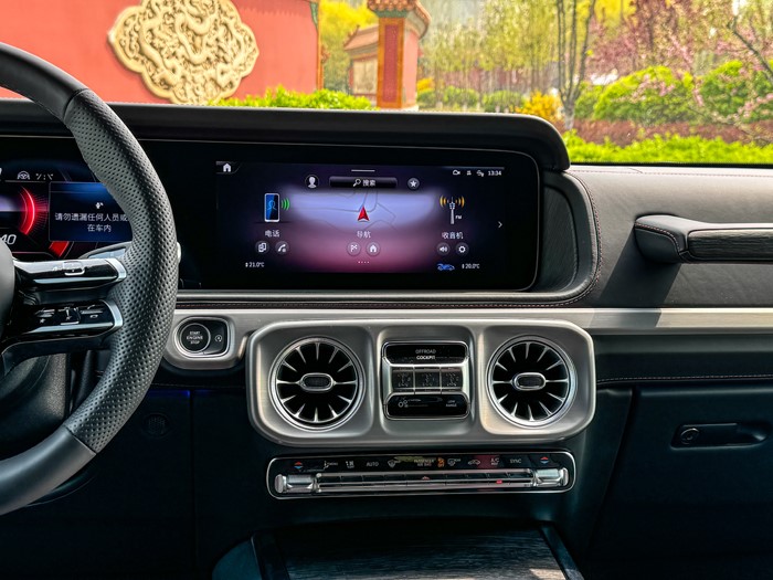 奔馳G的靈魂莫過(guò)于車輛前、中、后三把機(jī)械式差速鎖了,所以三把鎖的控制按鈕自然不會(huì)缺席。還是熟悉的位置,還是熟悉的味道。