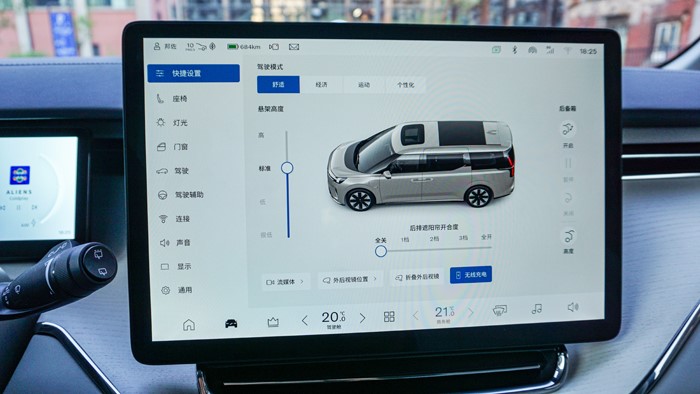 EM90配備大尺寸觸摸屏幕,集成了車載導(dǎo)航、多媒體娛樂和車輛設(shè)置等功能,操作簡便直觀。分區(qū)空調(diào)、后排座椅一鍵式調(diào)節(jié)功能都可在上面完成操作。