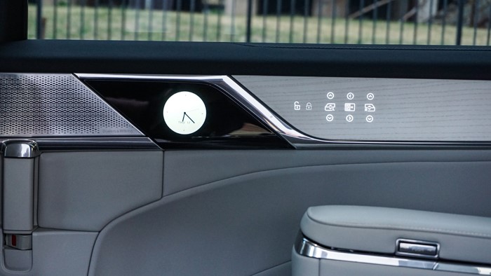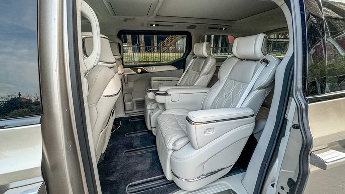 說到尊貴的第二排商務(wù)艙空間,兩個舒適的航空座椅帶有通風(fēng)按摩加熱及一鍵式0重力功能,還有頭頂?shù)亩嗝襟w液晶顯示屏,讓旅途不再枯燥。側(cè)滑門的玻璃是可以電動升降的,還鑲嵌了數(shù)字時鐘,豪華感的營造十分到位。