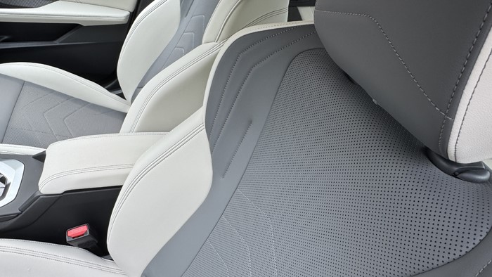 車門板的造型很有時(shí)代感,簡(jiǎn)潔的幾個(gè)線條就將功能合理劃分,視覺(jué)和觸感上一流。身體接觸的區(qū)域均為軟性材質(zhì)包裹,灰白雙色的美感充滿著眼球。