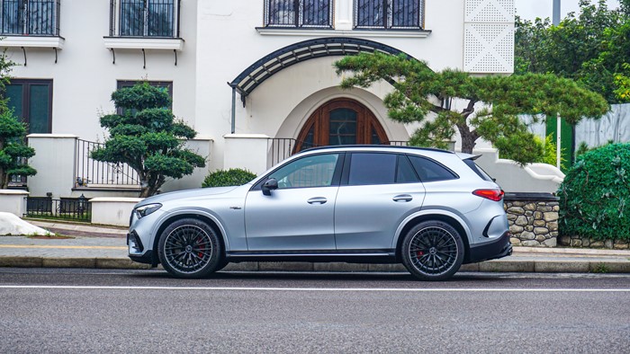AMG GLC 43的車身線條很流暢,側面的腰線勾勒出動感的輪廓,同時突顯出車身的穩(wěn)定感。車身的長寬高為:4749*1938*1640mm,軸距2888mm。輪胎規(guī)格為米其林:前265/45 R20、后295/40 R20,不過本車選裝了21寸的輪轂。