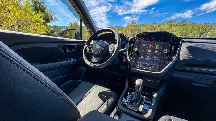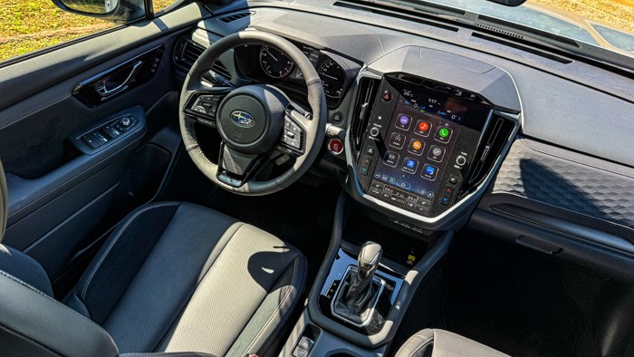 新一代斯巴魯森林人的內(nèi)飾也是煥然一新的,當(dāng)然部分設(shè)計(jì)風(fēng)格延續(xù)了上一代的元素。純黑的內(nèi)飾配色符合戶外運(yùn)動的調(diào)性。特裝版車型使用了STI點(diǎn)火按鍵,為車內(nèi)增加了一分運(yùn)動激情感。