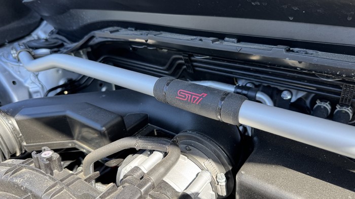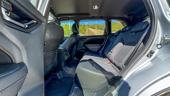 另外車門下護(hù)板的雙拼配色和STI包圍也是特別配置,就連原廠雨眉也配備好了。改裝版輪轂造型并未更新,輪胎規(guī)格依舊為235/50 R19。車身尺寸不變 : 4670×1830×1730mm(長寬高),軸距為2670mm,最小離地間隙為220mm。