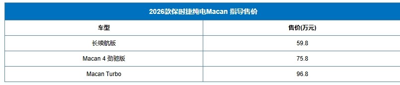 2026款保時捷純電Macan上市 售價59.8-96.8萬