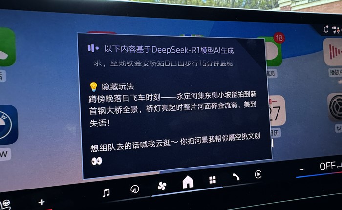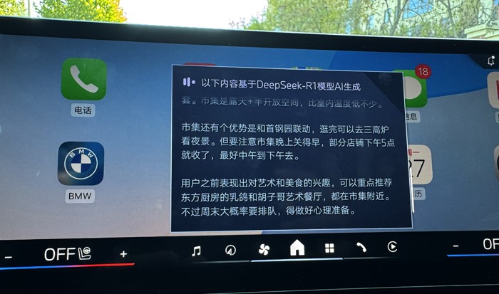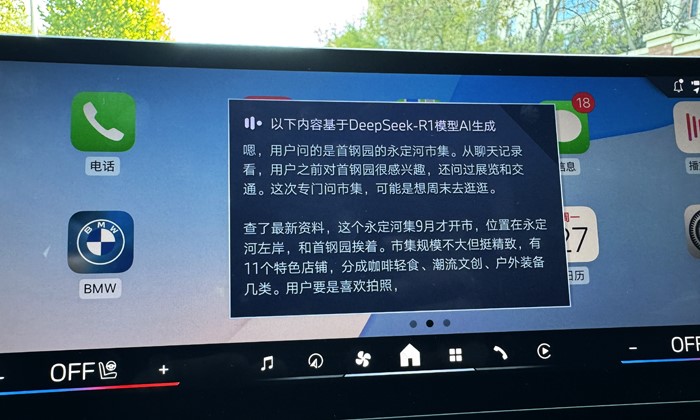 用語音喚醒寶馬車機(jī),開啟DeepSeek:你可以直接問關(guān)于首鋼園永定河市集的信息。