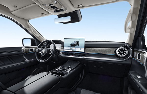 內(nèi)飾方面,新車換裝全新15.6英寸中控屏搭配液晶儀表,并換裝懷擋設(shè)計(jì),還增加15.6英寸后排娛樂屏。對(duì)中央島臺(tái)進(jìn)行重新設(shè)計(jì),提供無線充電面板及越野控制按鍵。另外扶手內(nèi)增加了冷暖箱設(shè)計(jì)。新車將搭載Coffee Pilot Ultra輔助駕駛,支持城市NOA、高速NOA。