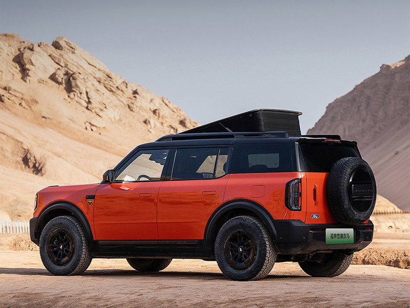 外觀方面,新車延續(xù)了燃油版設(shè)計風(fēng)格,貫穿式中網(wǎng)與兩側(cè)大燈組結(jié)合。不同的是中網(wǎng)搭配可發(fā)光的大尺寸“BRONCO”LOGO,另外大燈造型也不同。同時換裝了更為寬厚的前包圍設(shè)計,車頂還帶了激光雷達(dá)裝置。車身尺寸方面,增程版長寬高分別為5025*1960*1825(1815/1840)mm,軸距2950mm,純電版長寬高分別為5025*1960*1815(1825)mm,軸距2950mm。